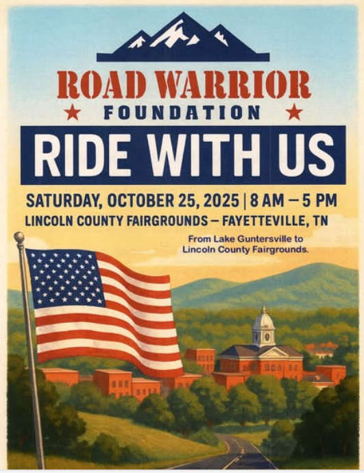 The Road Warriors are coming to Fayetteville. The Road Warrior Foundation will culminate their 5 day ride tomorrow at the Lincoln County fairgrounds.